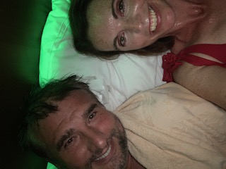 The spa lady came back to let us know we could either stay in the jacuzi the full time, or move onto the other circuit treatments. Nervously she watched us exit the barrel, slightly wobblier than when we'd gotten in, but still sober enough to manage the narrow stairs. 15 minutes in the sauna with our trusty beer mugs was more delightful relaxation, although it was hard to tell if the sauna was actually any warmer than the Spanish temperatures we'd soon be facing outside.