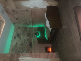 Next, on to the finale. Time to relax on a bed of barley! We waited patiently for the spa lady to leave before laughing at how absurd this part of the experience seemed to us. The room was laid out with double bedframes filled with barley, which looked more suitable for feeding livestock than a comfortable place to lie. There were clean sheets and pillows placed on top the spiky grain, so we decided we may as well try it out. I don't think either of us would say it was comfortable, but the warming artificial fireplace and green (why green??) ambient lighting made our last 15 minutes at the beer spa a memorable and comical experience.